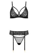 A detachable garter belt with a back closure harmoniously complements the set. The fixed, adjustable garter straps allow versatile combinations with stockings and add a seductive touch to the overall look.