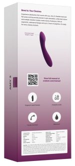 Ergonomiskt perfekt böjda vibratorn Amy 2 från SVAKOM med plattare spets speciellt till en direkt stimulation av lustpunkter och på hela kroppen. Silikonvibratorn är sammetslen och flexibel. Den ligger bra i handen och glider nästan av sig själv över huden och in i intima djup. Perfekt att använda både när man är själv och tillsammans med partnern.