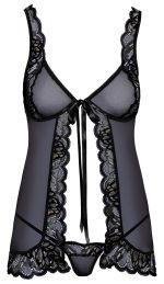 Babydoll & string i ett set från kissable. Babydoll av fint powernet i mix med ädel effektspets. Mjuk och elastisk för maximal komfort. Den korta babydollen är öppen framtill och stängs med en clipförslutning under det snygga satinbandet. Kupbyglar och justerbara axelband ger en perfekt passform. Den fina lilla stringen av effektspets har två smala stretchremmar som går ihop i grenen.