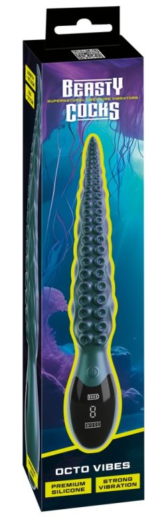 The long Octo Vibes vibrator from Beasty Cocks by You2toys is in an imaginative tentacle design with a metallic look. Not only is it an exciting, mystical eye-catcher, it is also the perfect diver for deep pleasure as well because of its breathtaking stimulating textures! In addition to that, its extremely powerful vibrations spread right to the tip, making it flick and flutter in a very dynamic way – almost as if the tentacle were alive. This means that the Octo Vibes will turn hot play into an unforgettable adventure of pleasure!
