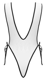 The revealing body from Fantasy by Cottelli is made out of white material with contrasting black details. It is extremely seductive because of its arousing ombré gradient – from a slightly transparent lace look at the top to the opaque part in the crotch area. It is also low cut at the front and the back. Furthermore, there is a connection strap over the cleavage area. It is open at both sides but there are ribbons at either side that can be tied together and adjusted to fit. The very high-leg design puts the legs and buttocks in the limelight. The body is soft and stretchy for a very comfortable fit. 94% polyamide, 6% spandex.