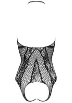 The Body FB003 in stylish black is an elegant and sensual lingerie piece that captivates with its high-quality craftsmanship and refined details. Made from soft, stretchy material, it gently hugs the body, accentuating the feminine silhouette while ensuring maximum comfort. The deep neckline, adorned with delicate lace and sheer inserts, adds a touch of seductive elegance, making this body a true eye-catcher. The open-back design with fine strap details brings a hint of extravagance, enhancing its sensual allure. A distinctive highlight is the open crotch, adding an extra erotic touch to the design. Perfect for special occasions or as a sophisticated addition to any lingerie collection, the Body FB003 seamlessly blends elegance, comfort, and sensuality in a harmonious design.