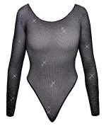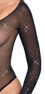The black, long-sleeved body from Fantasy by Cottelli is made out of exciting transparent net. It is covered in glittery gems that are in different sizes. It is soft, light and extremely stretchy for maximum comfort. It is in a revealing thong style and high-leg design, which puts the legs and buttocks in the limelight.