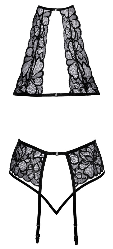 Soft-BH, höfthållare och string i ett set från kissable helt i fin blomsterspets. Mjuk och elastisk för maximal komfort. Snygg BH med hakknäppning i nacken och i ryggen. Höfthållare med hakknäppning baktill, strumphållarna kan justeras. Den lilla stringen har smala stretchremmar som går ihop i grenen.