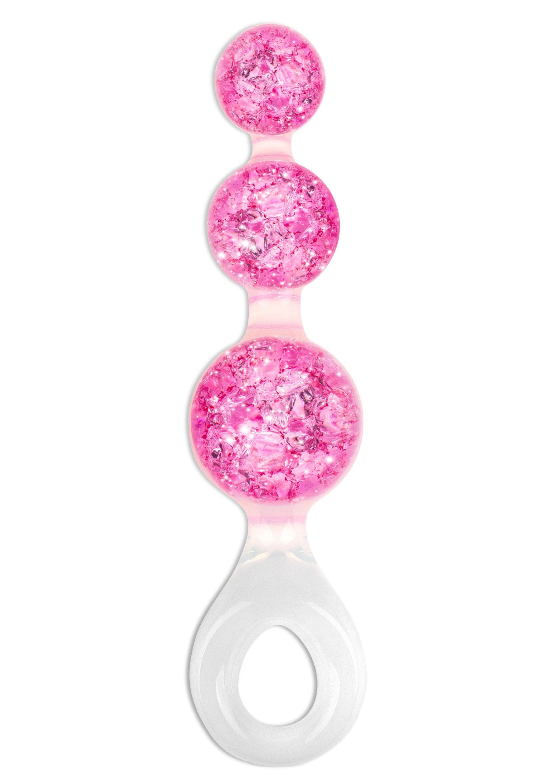 The ToyJoy Crystal Trio Butt Plug Medium is designed for comfortable and confident anal play. Made from 100% body-safe liquid silicone, it is smooth, flexible, and pleasant to wear while staying firm enough for easy use. The three crystal-look balls create a stylish, sparkling appearance and a gradual feeling during use. The ring base provides safety, a secure grip, and easy retrieval. Use with a water-based lubricant for best comfort. Easy to clean and maintain. This medium size is suitable for users with some experience who are looking for a visually appealing and comfortable upgrade.