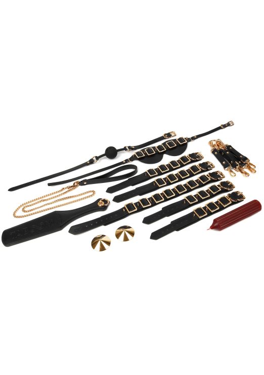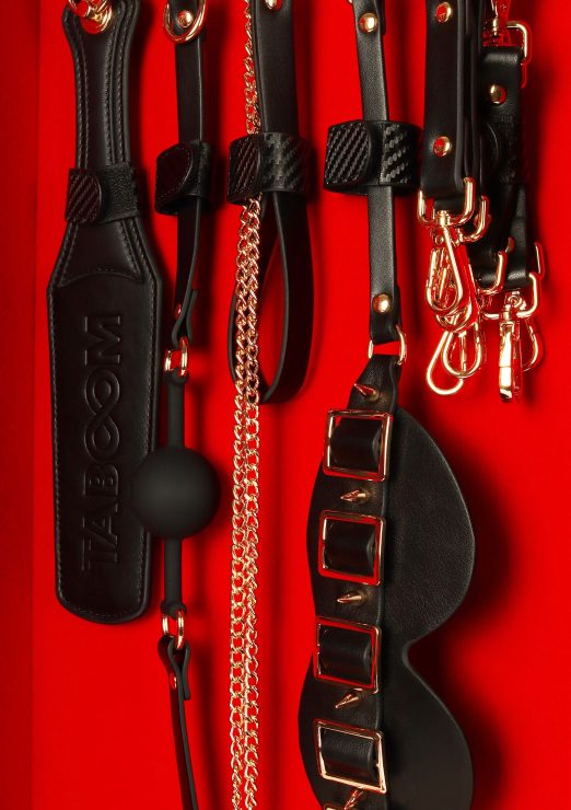 Unlock your deepest fantasies with TABOOM Desires Masterpiece Suitcase – a unique collection of 11 exquisite bondage essentials designed for couples ready to explore new heights together. Inside the eye-catching suitcase, you’ll find a seductive collar with leash, elegant handcuffs and wrist cuffs, a sensual blindfold, teasing ball gag, smooth paddle, alluring nipple covers, and a BDSM drip candle to heat up every moment.
