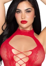Sweet in the front, cheeky in the back – the Dotted Net & Lace Halter Mini Dress is full of surprises. With flirty dotted net and heart details, the front brings a touch of playful romance. Turn around, and the faux lace-up design creates the illusion of a daring open back that teases just enough to set the mood. Cute, bold, and made for sexy moments.