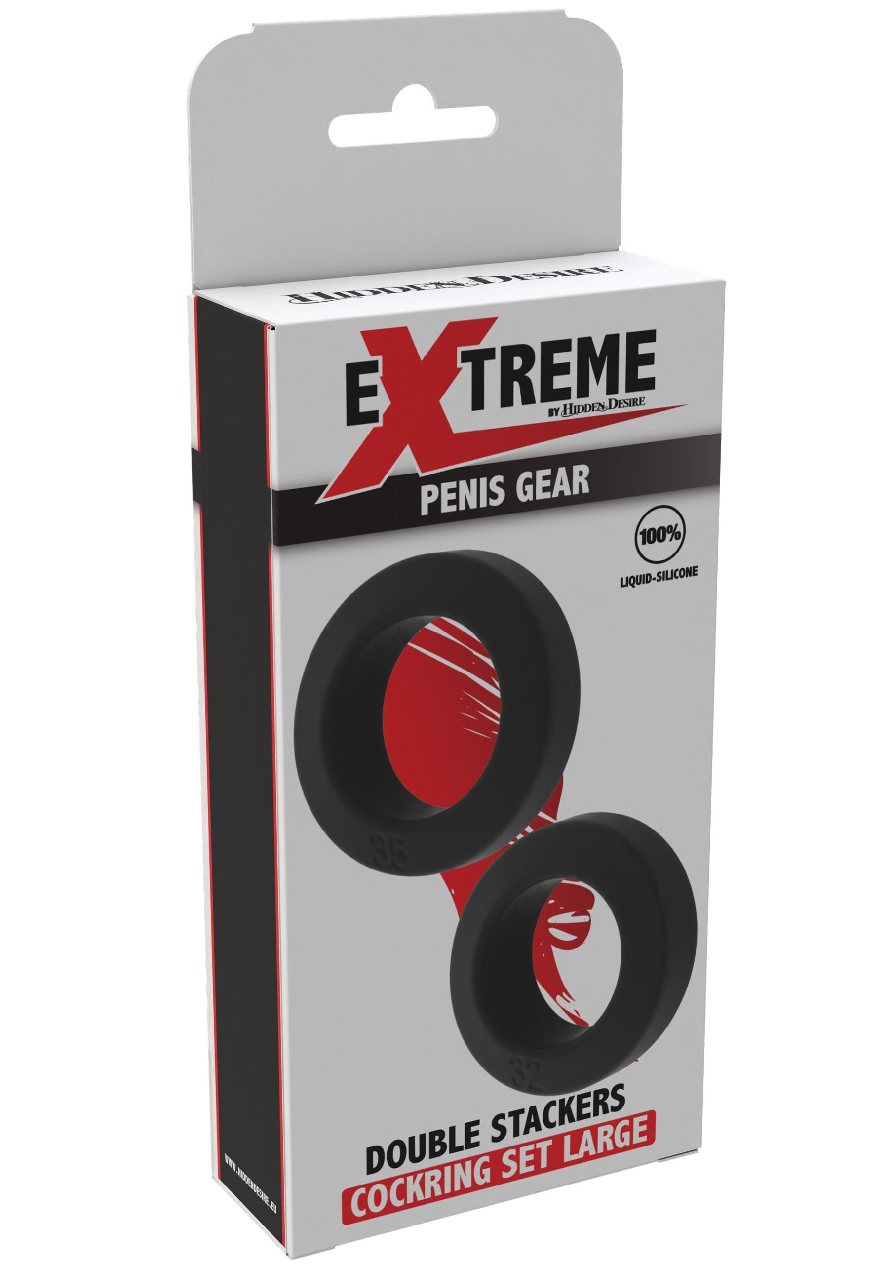 This set includes two large cockrings that can be worn separately or stacked together. Made from soft, super-stretch silicone for a secure but comfortable fit. The larger sizes offer extra comfort and strong support. Helps improve erection firmness and control. Simple design, easy to use, and easy to clean. Suitable for users who prefer a larger fit.