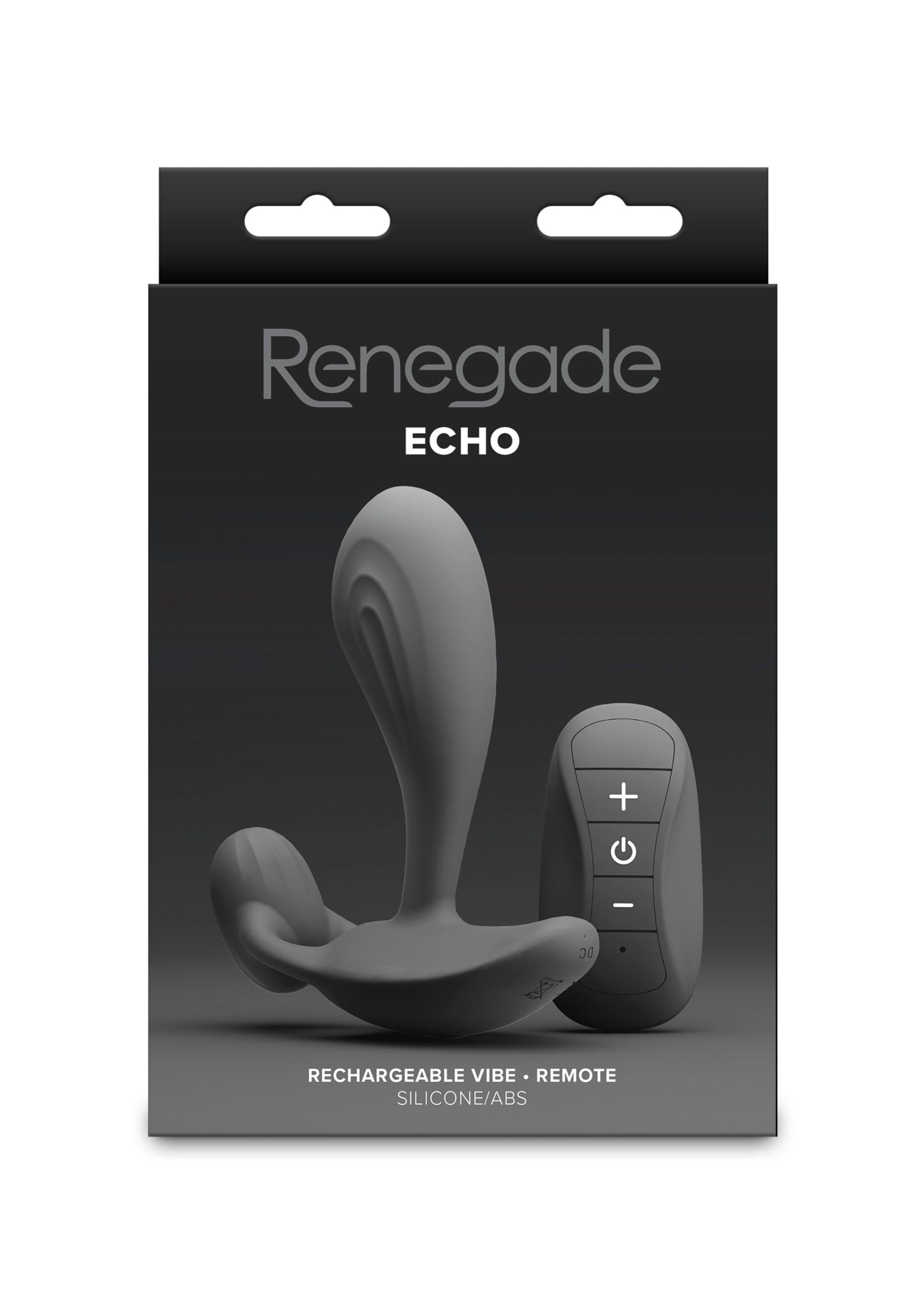 Echo by Renegade – a sleek, insertable massager designed to stimulate the prostate and taint with vigorous vibrations. Featuring a progressive design, Echo is made from richly supple silicone for a comfortable experience during extended sessions. Play alone or with a partner using the included remote. Rechargeable. Water Resistant. Suitable with all lubricants. (AAA battery for remote not included.)
