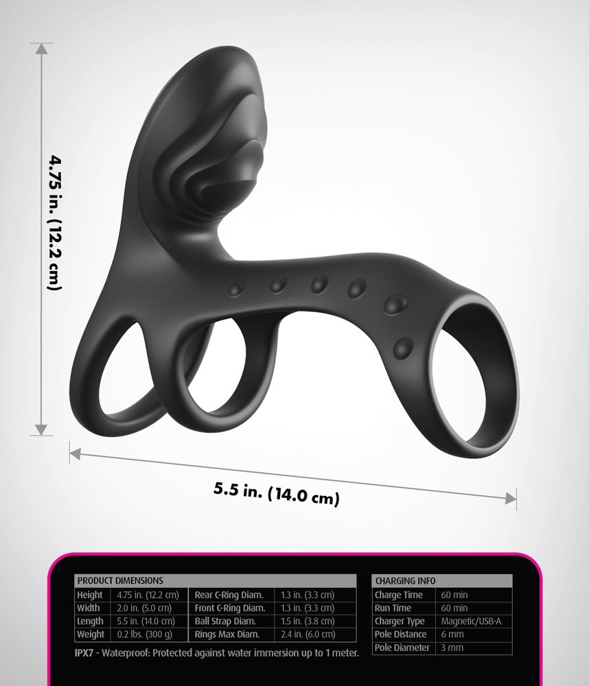 The sleeve and the rings are easy to put on and fit perfectly as well, thanks to the soft, stretchy silicone that the product is made out of. The high flexibility ensures that the powerful dual vibrations are experienced intensely with every movement. Maximum comfort and pleasure!