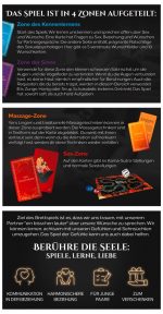 Everyone can learn something when playing this Game of the Senses for couples. Developed together with sexual psychologists, there’s sensual advice and suggestions, as well as new ideas and exciting fun with tantra massages and Kama Sutra elements. It’s not just about sex – it’s also about getting to know each other better and deepening the intimacy. The board game is divided into 4 zones: Getting to know each other, Senses, Massage and Sex. Questions have to be answered and tasks completed. Mutual desire will increase from zone to zone…