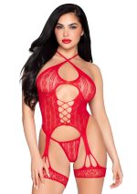 Take your seduction game to the next level with this 2 piece cami garter lingerie set by Leg Avenue. Featuring a heart net cami top with cross-over straps, attached leg garters, and matching panties, this spicy lingerie look is sure to leave them wanting more.