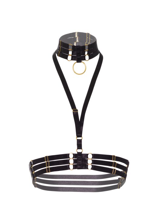 A stylish, elegant harness made of luxurious satin, elastic straps. Super sexy and fully adjustable for your personal fit. Can be worn during intimate moments, over a bra or as a fashion accessory, such as over a blouse.
