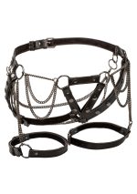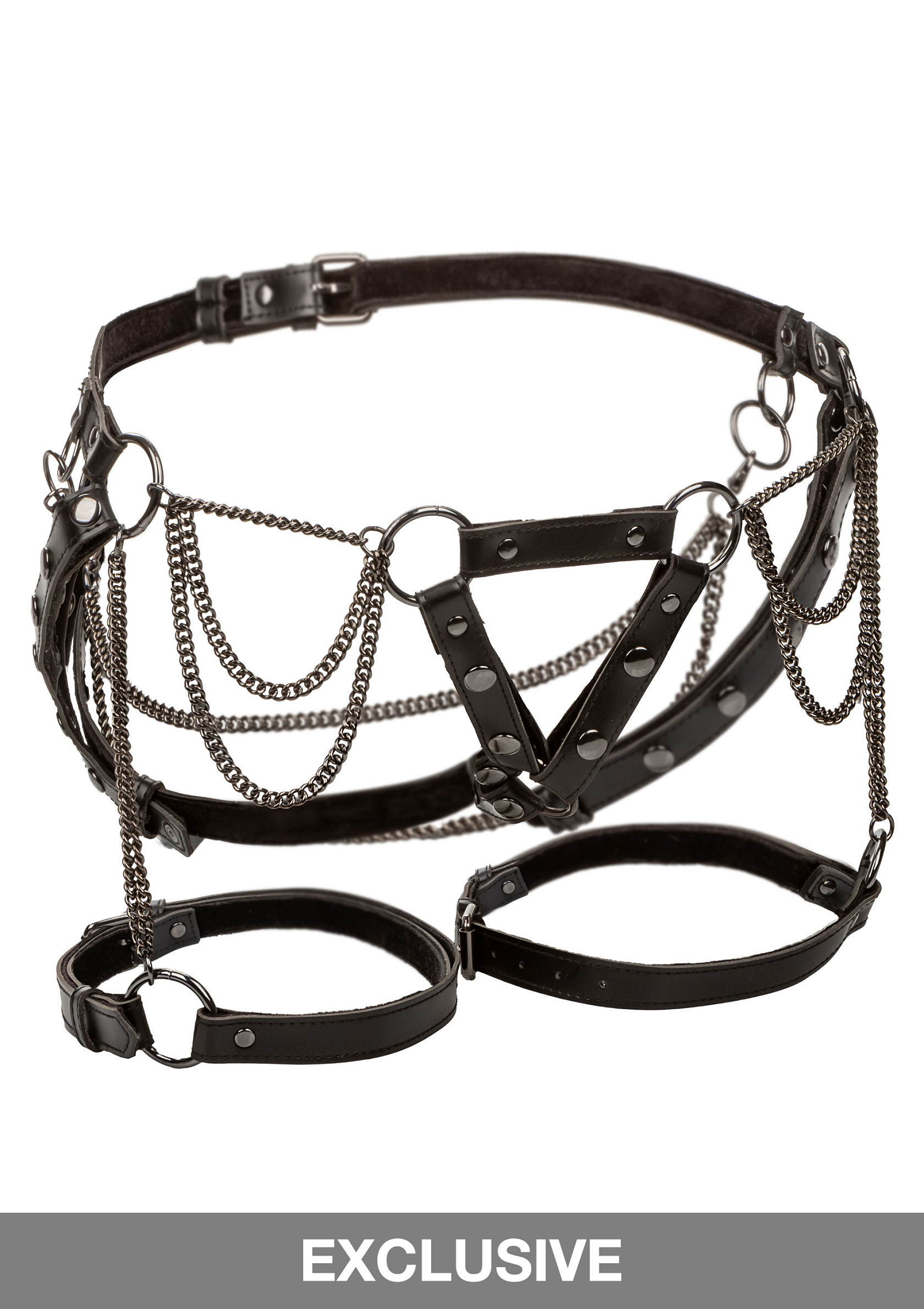 PVC (fabric) Polyester (velour lining) Iron (buckles, O-rings, chains, rivets, snaps) Zinc Alloy (clasps) |