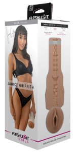 Masturbator med vaginaöppning i ett pärlemorsfärgat hölje. Med orginalavtryck av erotikstjärnans Janice Griffiths intimregion. Det är första produkten från Fleshlight som har en brunare hudfärg. I lustkanalens inre finns olika stora noppor, lameller och räfflor för en stimulationsintensiv yta. Med lock och stjärnans underskrift bredvid blygdläpparna. Superskin textur. Total längd: 25 cm, total längd = införingsdjup. TPE.