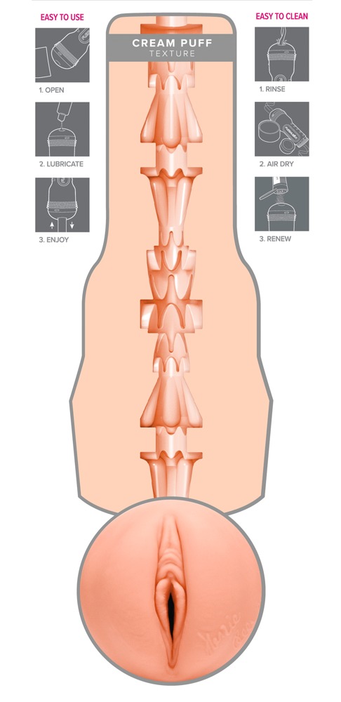 Smidiga masturbatorn Kenzie Reeves Creampuff från Fleshlight i en diskret ficklampsdesign med en original formad vaginaöppning av erotikstjärnan Luna Star. Den väldigt variationsrika strukturen med olika diametrar är väldigt lik Lunas tajta vagina och ger en intensiv penismassage. Den inre hylsan är av ett hudliknande supermjukt material. Bredvid öppningen befinner det sig en autograf av Luna. Hylsan kan tas ut ur masturbatorn för rengöring.