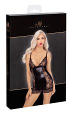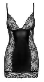 Extra kort klänning från Noir i en tajt, figurbetonande skärning. Ädel powerwetlook med mjuka spetskupor och bred spetsinsats på sidorna framtill. Även kanten är prydd med spets. Mjuk och elastisk för maximal komfort. Dragkedja baktill. Axelbanden kan justeras.