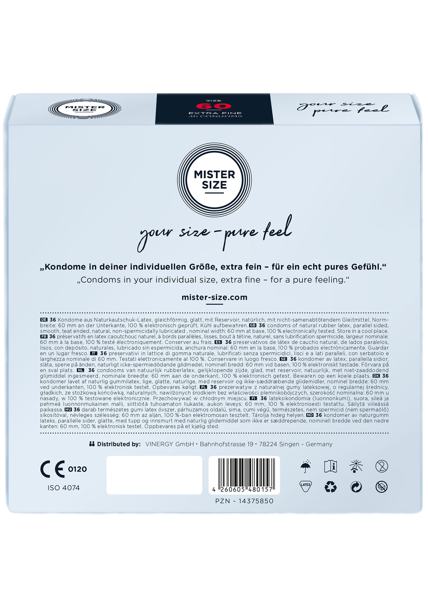 Bli först med att recensera ”Kondomer MISTER SIZE 60 mm 36-pack”