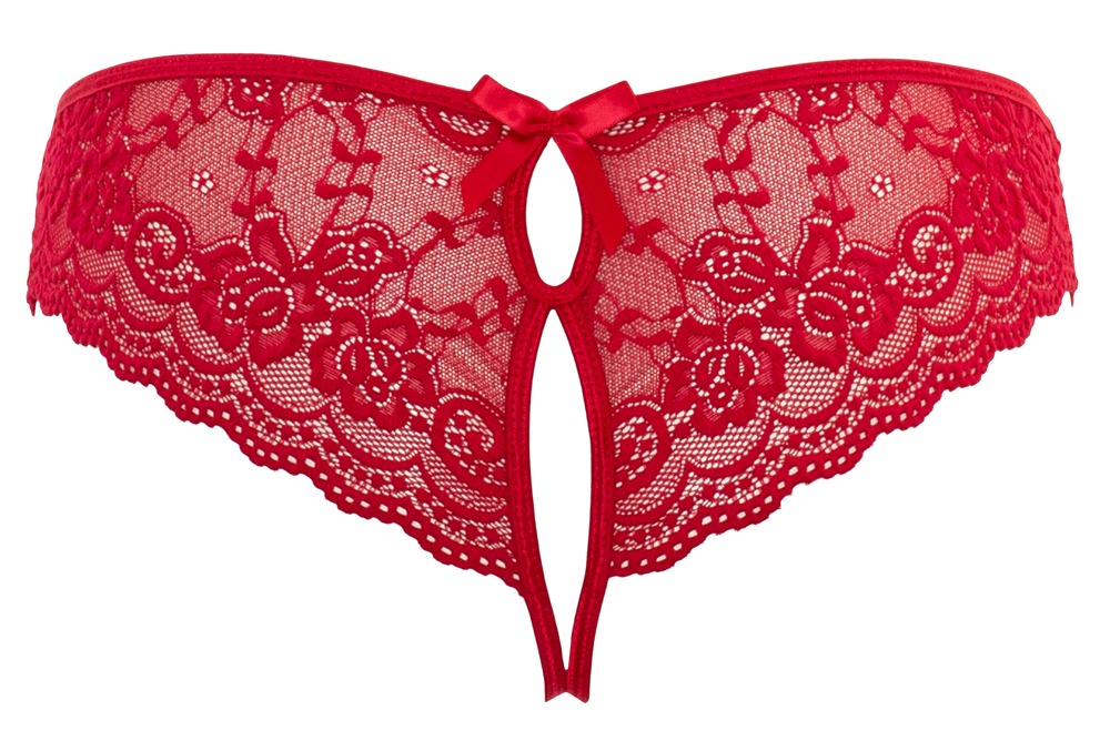 Denna söta trosa kombinerar ädel blomsterspets med rosettprydda cut-outs framtill och baktill. 2 elastiska band i grenen som möjliggör en sexig insyn. Tack vare att trosan har en sådan hög andel av elastan är den väldigt bekväm och anpassar sig perfekt till de kvinnliga formerna.