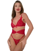 Svep in dig i ren förförelse med Daring Intimates Lace Dreams 3-delat underklädesset. Detta oemotståndliga set består av en bh, midjeband och matchande trosa. De justerbara banden och hysk- och hakknäppningen säkerställer perfekt passform, medan den stretchiga röda spetsen lämnar precis tillräckligt åt fantasin. Temptation har aldrig sett så här bra ut.