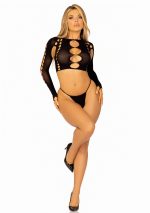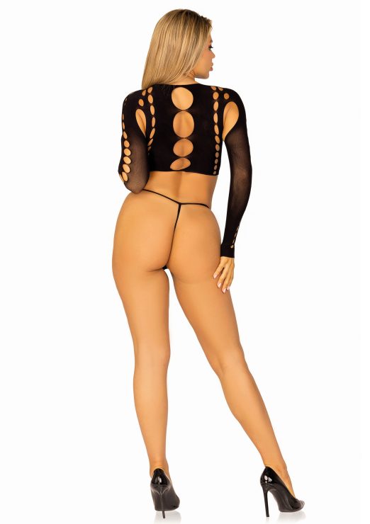 2 PC Seamless cut out long sleeve crop top and g-string panty.