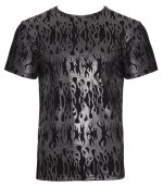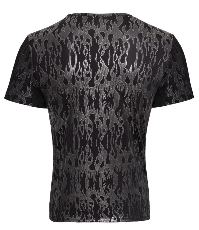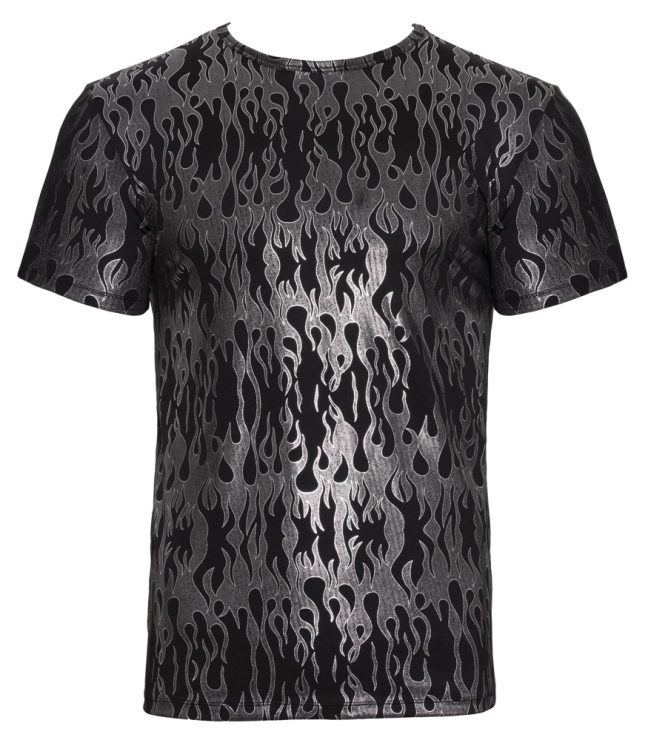 The emphasising shirt from Svenjoyment has short sleeves. It is black with a stylish mystical metallic design in a shimmering silver colour. The shirt is soft and stretchy for maximum comfort.