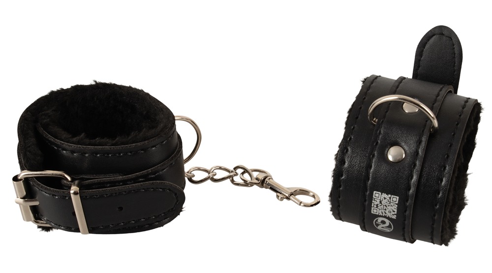 The stylish faux leather handcuffs can be quickly put on and adjusted to fit with their buckle fasteners. They have soft padding for maximum comfort. Made out of PVC and metal.
