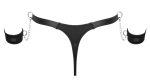 The black thong from Svenjoyment Bondage includes soft handcuffs. It is made out of matte look with silver-coloured metal accessories. It is soft and stretchy for a very comfortable fit. There are decorative studs at the front of the thong. There are rings at the front and sides of the waistband. The included handcuffs with snap hooks can be easily attached to the rings. The soft matte look handcuffs can be put on and adjusted quickly, thanks to their hook and loop fasteners.