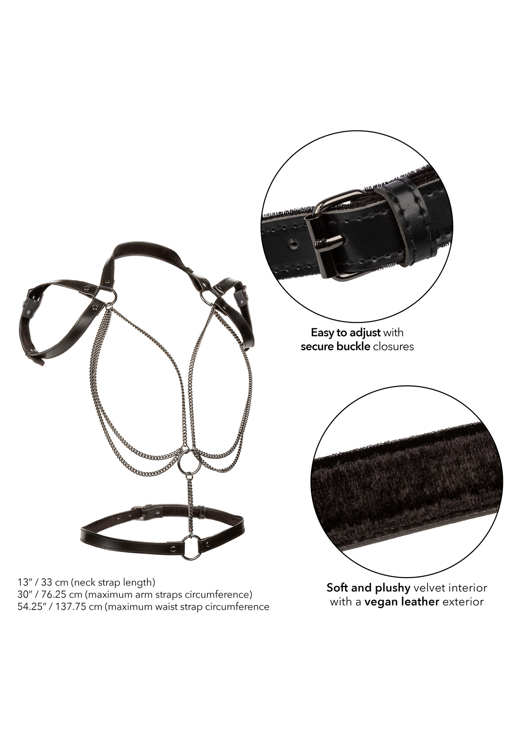 33 cm (neck strap length), 76.25 cm (maximum arm straps circumference), 137.75 cm (maximum waist strap circumference) |