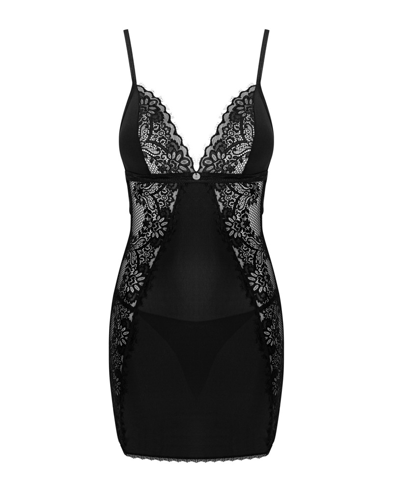 Figurbetonande underklänning och string i settet Maderris från Obsessive. Mjuk och elastiskt med vacker spets på kuporna och sidorna, samt baktill. BH-hakknäppning baktill. Axelbanden kan justeras.