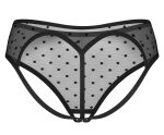 The crotchless panties, Nuites from Obsessive, are in a seductive style. They are made out of elegant transparent black material with fashionable dots. It is also soft and stretchy for a very comfortable fit. There is a discreet decorative detail on the wide waistband and the front. It is seductively crotchless.