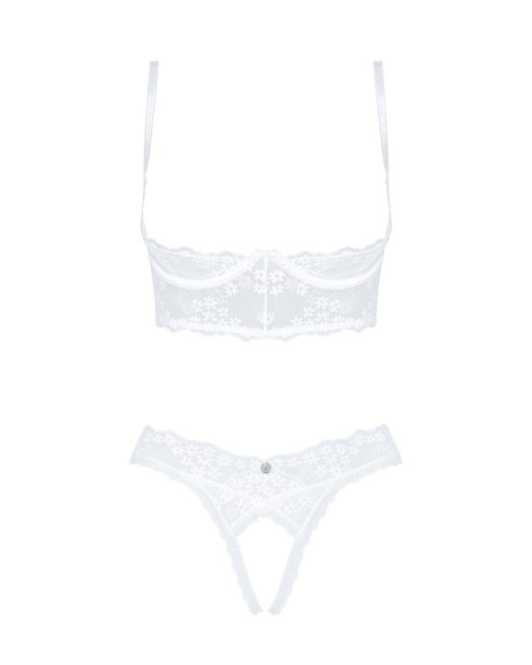 Drömmer du någonsin om en romantisk kväll med en stor dos krydda? Inget kan vara enklare… allt du behöver göra är att ta på dig denna uppsättning oemotståndligt sexiga underkläder med öppna kupor och en öppen gren – och voila! Himmelska ögonblick är till hands! Vi önskar dig en kväll full av kärlek!