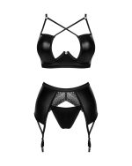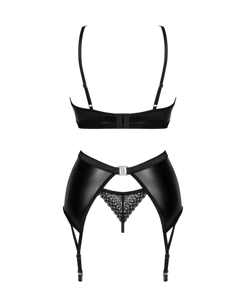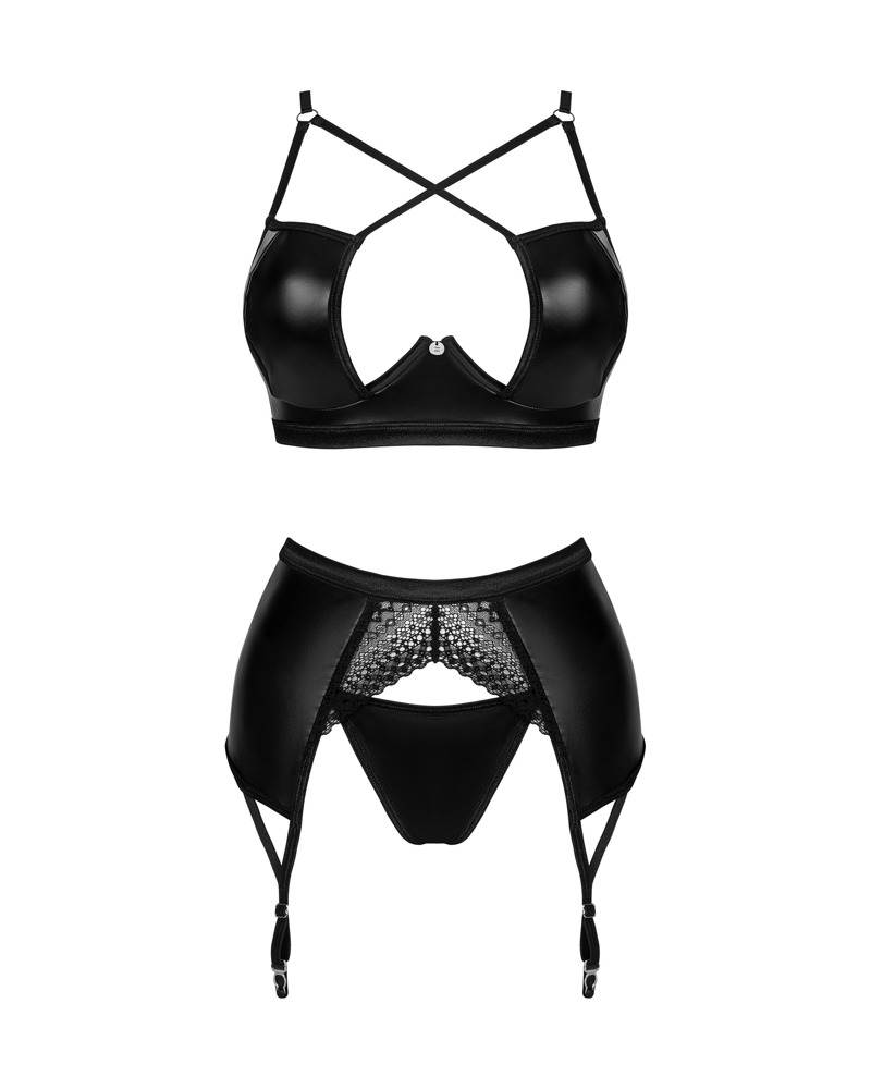 bra: 100% polyurethane; garter belt: Fabric 1: 100% polyurethane, Fabric 2: 90% polyamide, 10% elastane; thong: Fabric 1: 100% polyurethane, Fabric 2: 90% polyamide, 10% elastane |