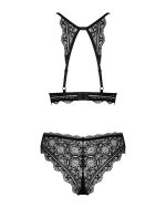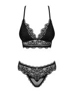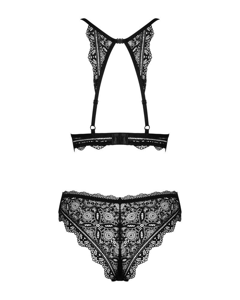 Svarta BH-settet Renelia från Obsessive med bygel-BH och string av mjuk stretchspets. Bygel-BH med smyckesdetalj mellan de vadderade kuporna. Baktill med snygg spetsdetalj med liten förslutning samt justerbar hakknäppning. Axelbanden kan också justeras. Stringen är i en hög skärning och betonar rumpan på ett sexigt sätt.