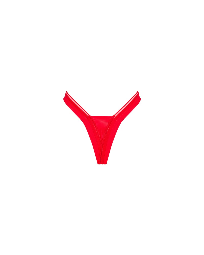 Korallröda stringen Larisya från Obsessive med fin brodyrfront och mjuka stretchremmar. Den lite högre skärningen betonar rumpan och benen på ett sexigt vis.