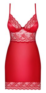 Knallröd miniklänning Lovica från Obsessive med spets framtill, baktill och på kanten. Axelbanden är justerbara. Den passande stringen är inklusive.