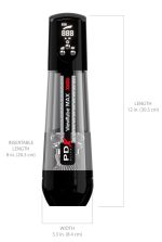 Total length 30.5 cm, insertion depth 20.3 cm, outer Ø 8.4 cm, inner Ø tight but flexible. Weight 640 g. ABS, TPE, PC.