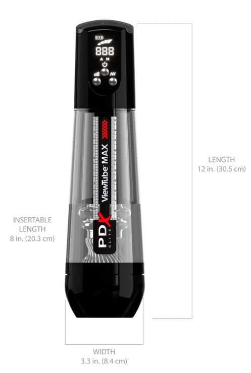 The transparent masturbator, ViewTube MAX from PDX Elite, is in a clear and easy-to-hold case with a protective lid. Have the best view of your penis when it’s surrounded by colourful lights while it is being pleasured (and swelling up)! The intense vibrations and the powerful intermittent suction function stimulate the entire penis. The vibrations and the 4 automatic varying suction modes can be controlled separately with the buttons on the control panel (with LED lights). The suction power can also be adjusted manually and can be easily controlled via the LED display. The dots and grooves inside the extremely soft, transparent sleeve provide the penis with an additional and intense massage. The sleeve is in a neutral design and can be removed for cleaning.