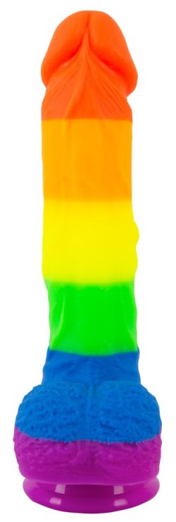 Snygga regnbågsfärgade silikondildon PRIDE! från You2Toys i detaljerad penislook med ådring och format ollon. Med stark sugfot som sitter säkert på alla släta ytor och som möjliggör en frihändig njutning. Dildon är också kompatibel med strap-ons och harnessar.