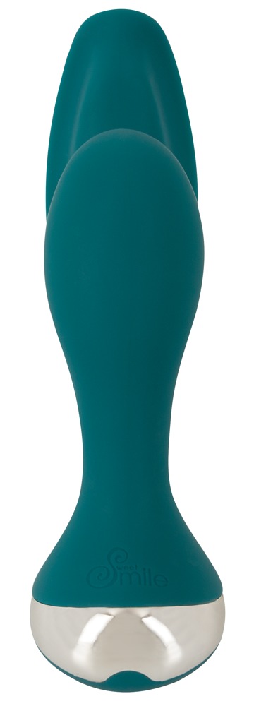 RC Hands-free vibrator från Sweet Smile för en synkron dualstimulation av vagina och klitoris eller anus och vulva. Vibratorn är ytterst flexibel och den tvåarmade, ergonomiska designen anpassar sig perfekt till kroppen och dess rörelser. För maximal njutning och bekväm att använda. Kan även läggas i trosan!