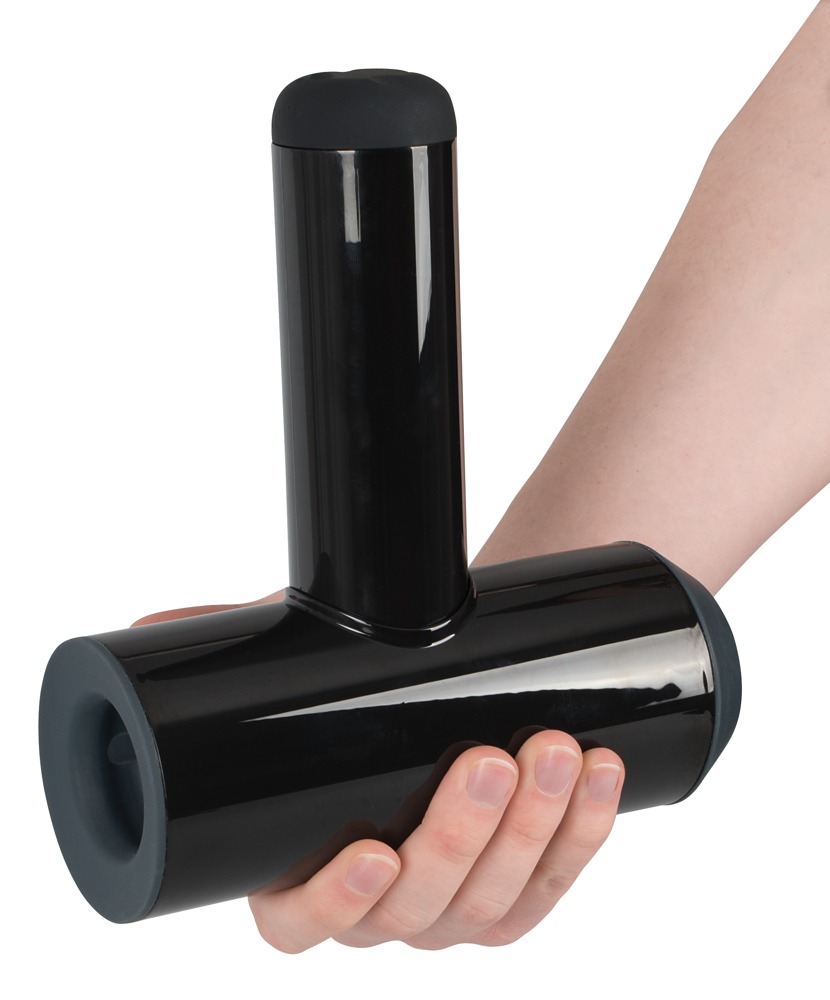 Svart masturbator med smidigt handtag. Invändigt med stimulerande räfflor och noppor. Vibrationen i 7 modus, den sköna handjobs-simulationen är i 3 hastigheter. Funktionen kan njutas av ihop eller enskilt. Vattentät. Med knappspärr. Öppen i båda ändar.