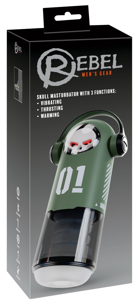 The easy-to-hold SKULL Masturbator with 3 Functions from Rebel in a stylish skull look. It will pleasure the entire penis with penetrating vibrations and a powerful thrusting massage. The warming function quickly gets the masturbator to the right body and operating temperature – and makes the skull’s eyes glow red. The perfect combination of innovative technology and unique design. For unforgettable climaxes!
