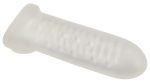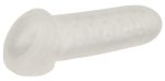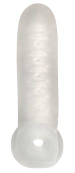 The closed Thickening Sleeve with Ball Ring Size L from REBEL increases the size of the penis quickly – for extremely fulfilling moments of pleasure. The stretchy and transparent penis sleeve can be slid onto the penis. It then makes the penis approx. 1.3 cm thicker and longer! The stimulating grooves inside provide additional friction and stop it from slipping off as well. The flexible ball ring pulls pleasantly and helps the sleeve stay in place – even during the wildest of rides!