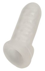 The closed Thickening Sleeve with Ball Ring Size M from REBEL increases the size of the penis quickly – for extremely fulfilling moments of pleasure. The stretchy and transparent penis sleeve can be slid onto the penis. It then makes the penis approx. 1.3 cm thicker and longer! The stimulating grooves inside provide additional friction and stop it from slipping off as well. The flexible ball ring pulls pleasantly and helps the sleeve stay in place – even during the wildest of rides!