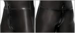 Denna latex jumpsuit med långa ärmar är inte bara en visuell upplevelse, den är också designad för praktisk användning. De långa dragkedjorna över axlarna, som sträcker sig upp till den eleganta höga halsen, gör det enkelt att ta på och av jumpsuiten. Den långa dragkedjan över grenen, som fortsätter upp över skinkorna, lägger till en extra dimension av spänning och tillgänglighet.
