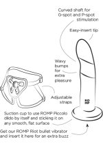 ROMP Piccolo Pegging Kit features a 5-inch non-realistic dildo that hits anal and vaginal stimulation for both pegging and strap-on exploration. Easily adjust the harness and giddy up! Enjoy hands-free thrusting coupled with smooth, body safe silicone for sleek penetration. ROMP Piccolo Pegging Kit features a 5-inch non-realistic dildo that hits anal and vaginal stimulation for both pegging and strap-on exploration. Easily adjust the harness and giddy up! Enjoy hands-free thrusting coupled with smooth, body safe silicone for sleek penetration.