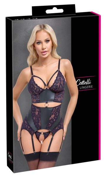 Set från Cottelli LINGERIE bestående av strumphållartopp och string. Av svart powernet med snygga detaljer i mattlook. Mjuk och elastisk för bästa passform och maximal komfort. Strumphållartoppen är extra djupt urringad ner till midjeinsatsen i mattlook. Påsydda mattlookränder för en fin siluett. Även djupt urringad baktill. Tryckknapp i nacken. Strumphållarna kan justeras.