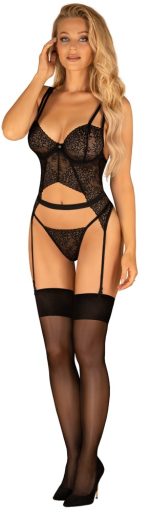 Strumphållartop och string i settet Yaskana från Obsessive av fin spets. Mjuk och elastisk för maximal komfort. I en läcker magfri skärning med midjeband. Kupor med bygel för perfekt stöd och passform. Variabel snörning baktill. Axelbanden och strumphållarna kan justeras. Den enkla spetsstringen fulländar denna sexiga look.