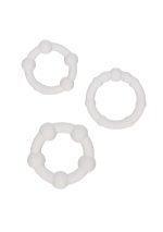 Silicone Beaded Rings are a set of 3 premium enhancers made from Liquid Silicone. They are soft, smooth, durable, and fully waterproof. The stretchy, seamless design is comfortable and easy to wear. These rings add extra pressure and stimulation, and can help increase endurance. Use them alone or combine them for different sensations. A simple way to upgrade your play with a comfortable, premium feel.