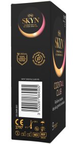 The condom mix Cocktail Club from SKYN contains 9 extremely thin condoms in 3 different scents and flavours: 3 x Piña Colada, 3 x Cherry Sunrise, 3 x Passion Daiquiri.